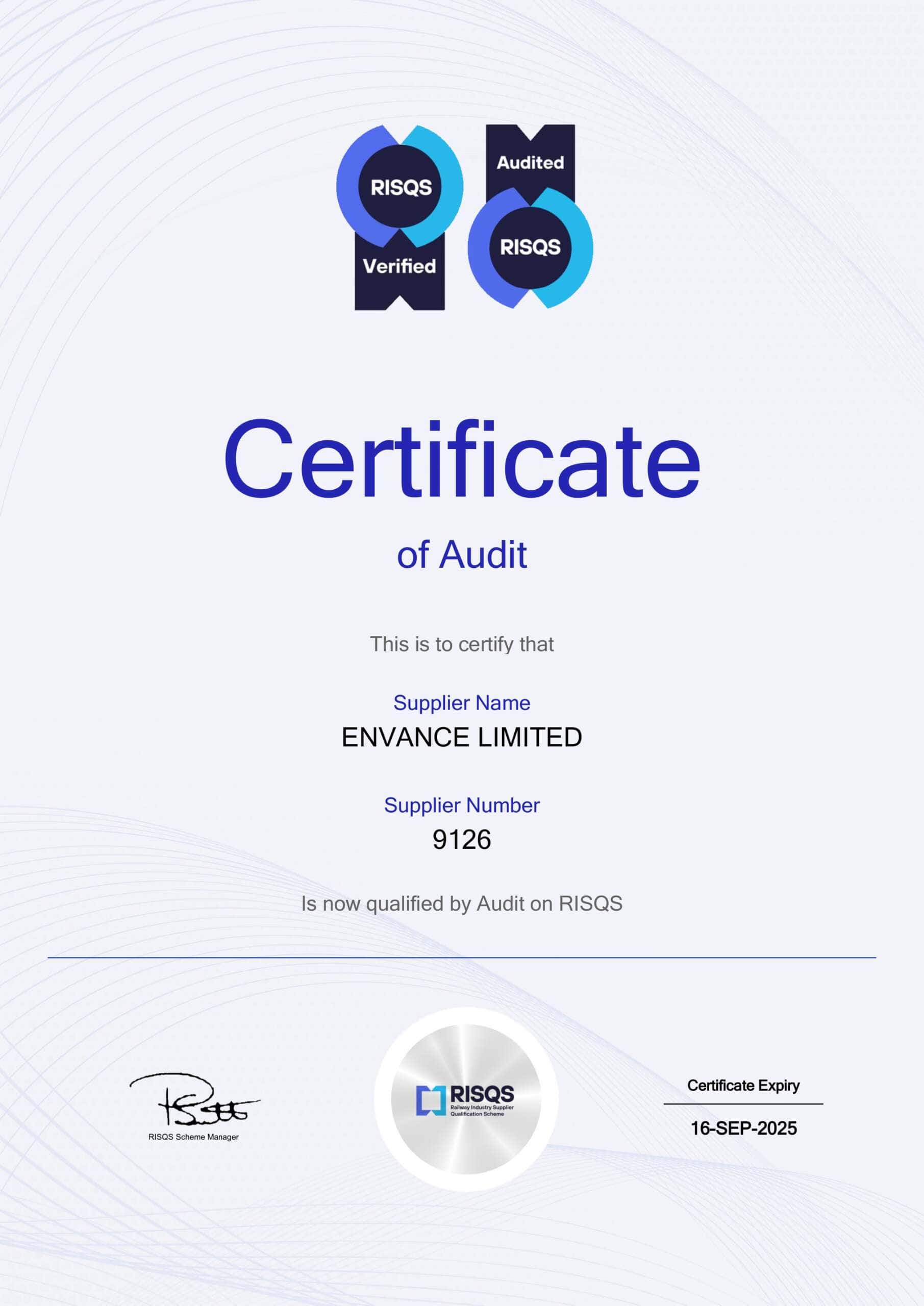 Read more…: Envance approved to work in rail sectorWe are happy to announce that following our RISQs recent audit, Envance is now able to support the rail industry. Our team has a great deal of previous experience working with clients in the rail sector and we are now qualified to provide Core Operational Railway Services and Sentinel.